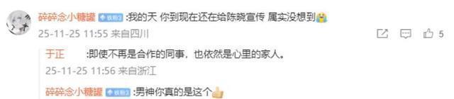网友感慨说,爷青回啊,竟然看到于正和陈晓互动,但于正回答说虽然和陈晓已经解约了,但在自己心里中对方还是家人一般的存在。