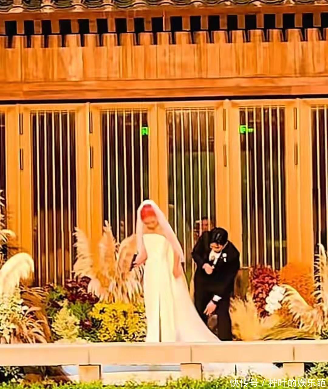 新娘刘一丝,34岁,似乎并未被岁月磨平棱角。一头粉发在金色抹胸裙的映衬下,宣告着她依旧是那个有个性、有思想的女孩。这大概就是刘欢夫妇教育的成果,不是温室里的花朵,而是敢于为自己人生做主的独立女性。她选择晚婚,想必是等到了那个非他不可的人。