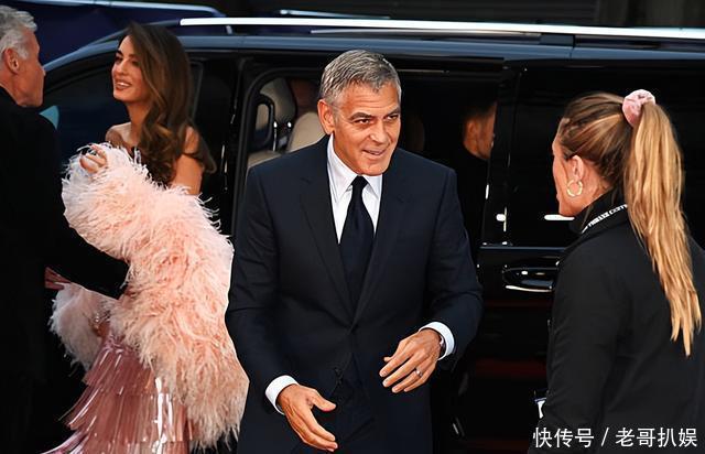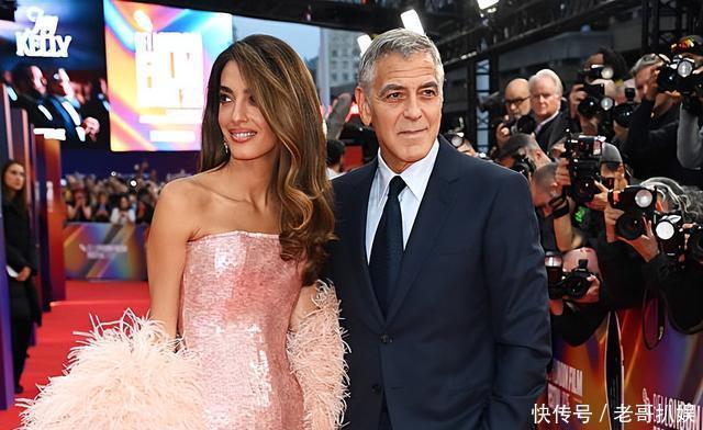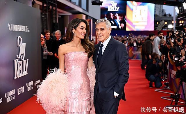 克鲁尼娇妻助阵首映礼!穿粉色流苏羽毛裙太仙了,47岁依然好惊艳