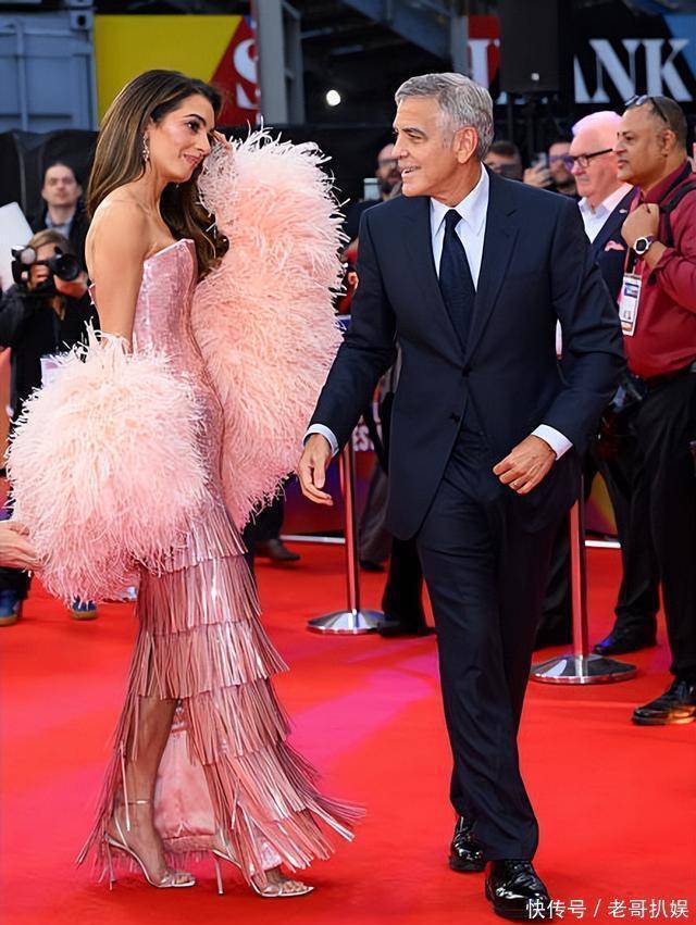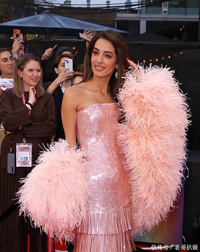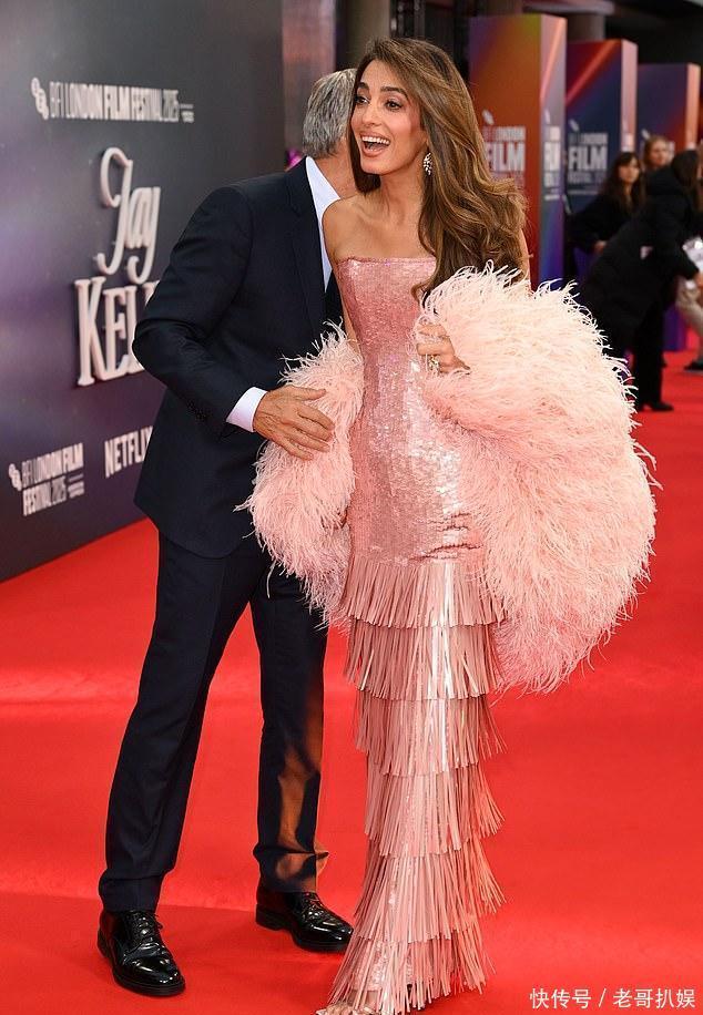 当地时��日,乔治克鲁尼和娇妻阿迈勒一起出席了新电影《杰伊·凯利》的伦敦首映式,克鲁尼的美女律师妻子阿迈勒抢了男主角的光环了,比克鲁尼还要闪耀。       47岁的阿迈勒真是行走的衣服架子,她这次的着装主打一个耀眼。这身粉色的裹身裙融合了多种的元素,亮片点缀,同时裙摆还是流苏的设计,袖口用夸张的羽毛制作而成,加上又是粉色,乍一看会觉得过于浮夸。       但是这位律政俏佳人,竟然轻松驾驭住了这条粉色裙子。阿迈勒真是很瘦,这条抹胸裙其实很挑战身材,可以看到她纤细的腰身和纤细的胳膊,身材真的非常紧致了。       金色的大波浪卷发,一直以来都非常适合阿迈勒。阿迈勒在自己的事业上,作为一名律师,平时的着装都非常职业化。而每次出席这些红毯,阿迈勒瞬间就化身成了女明星。       阿迈勒不是圈内人,但是她的时尚影响力,还真是可以和女明星比拼一下,说不定有些女明星的时尚地位还比不上阿迈勒。       裙摆的流苏让整条裙子有了活力感,尤其是走动的时候,将克鲁尼妻子摇曳的身材完美展现。阿迈勒踩着金属色的高跟鞋,十公分的细高跟,让她的小腿线条更加纤细。裙摆部分还加入了小开叉的设计,尽显大长腿。       67岁的克鲁尼,从年龄上来看,还真是不年轻了,但是整体的状态,包括对电影事业的追求,丝毫不输年轻人。       而妻子阿迈勒更是非常支持丈夫的事业,两人可真是郎才女貌。每次克鲁尼有新的电影作品,阿迈勒都积极助阵,尤其是首映礼红毯,几乎每次都会闪耀亮相。       克鲁尼年轻时候就非常帅气,而如今变成了老帅哥了。脸上也是有了皱纹,�岁的妻子在她身边就衬托得更加年轻了。       阿迈勒的气质属于那种成熟性感类型,这次的粉色礼服裙,带有一些少女感,她竟然还能轻松驾驭。       47岁的阿迈勒,有着女明星的气质和美貌,自己却是一位优秀的女律师,真正的律政俏佳人啊!       在克鲁尼的电影首映礼上,却被貌美的妻子抢了风头,但是克鲁尼依然还是如此开心,毕竟是自己老婆。       克鲁尼娇妻助阵首映礼!穿粉色流苏羽毛裙太仙了,47岁依然好惊艳